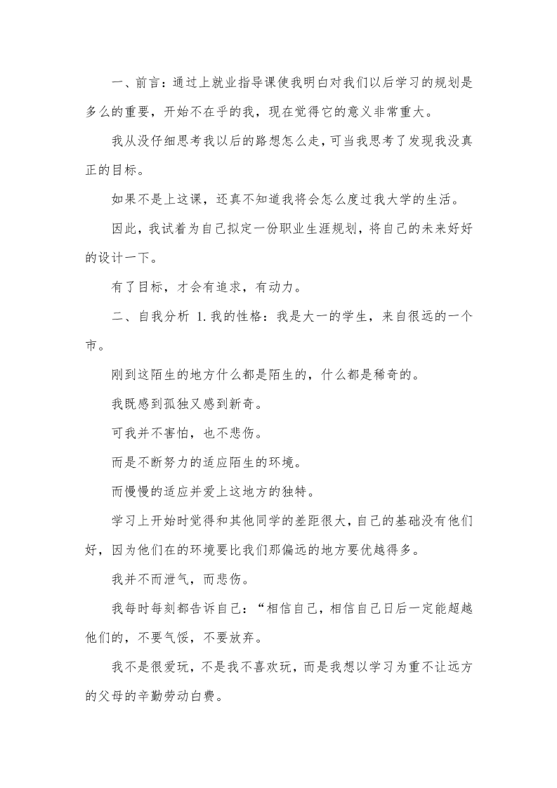 生涯规划书模板