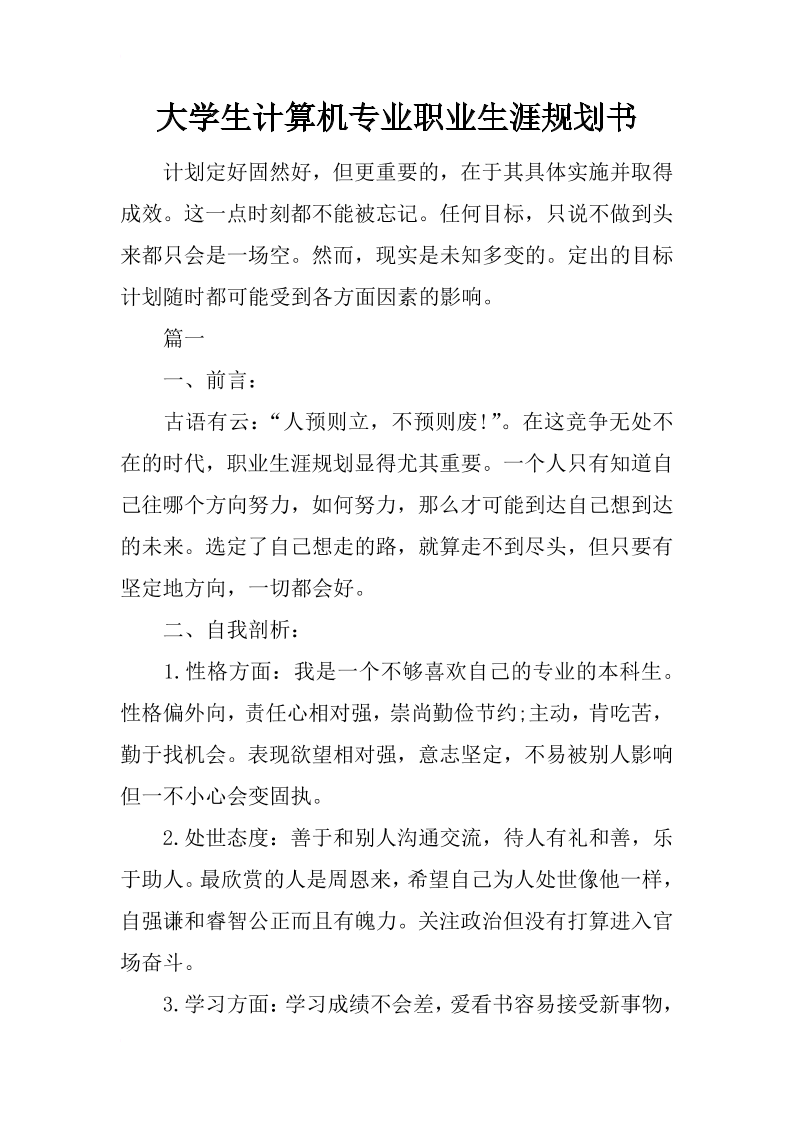 计算机专业的职业生涯规划书范文