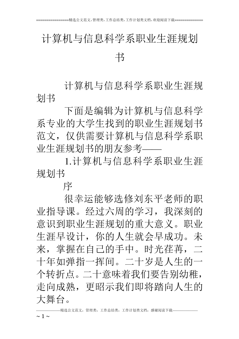 计算机与信息科学系职业生涯规划书