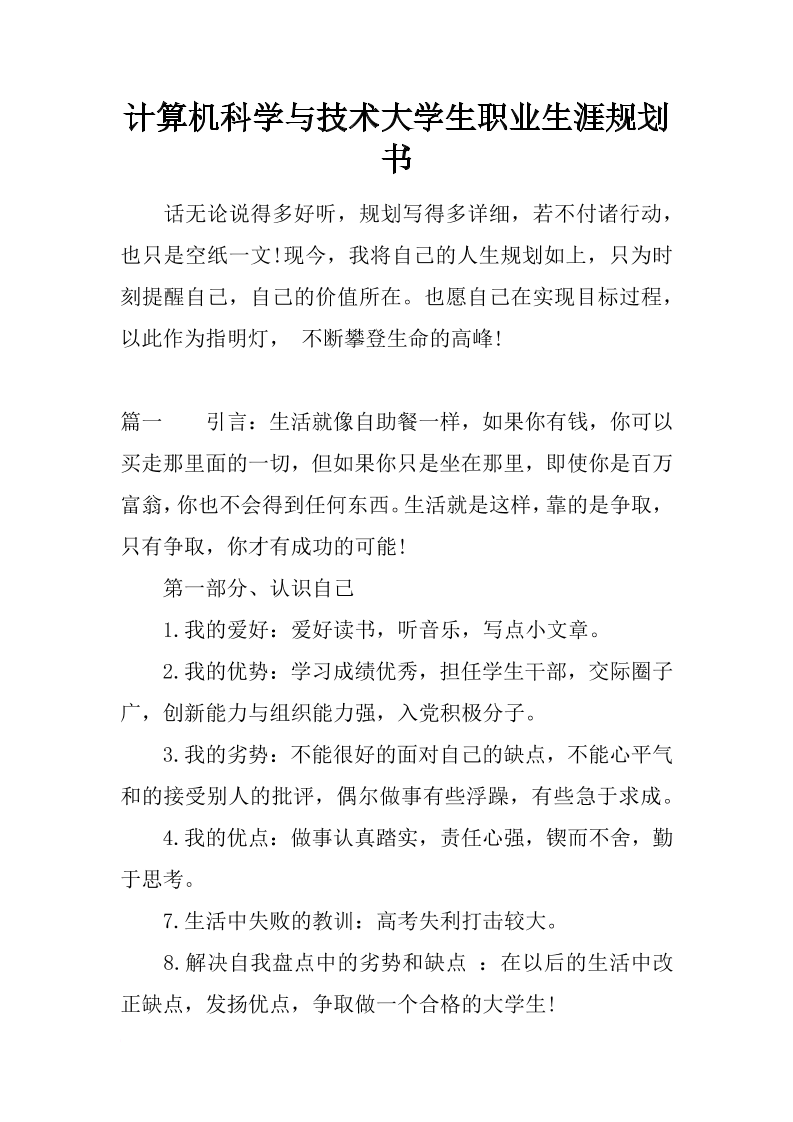 计算机科学与技术职业生涯规划书与生涯人物访谈报告